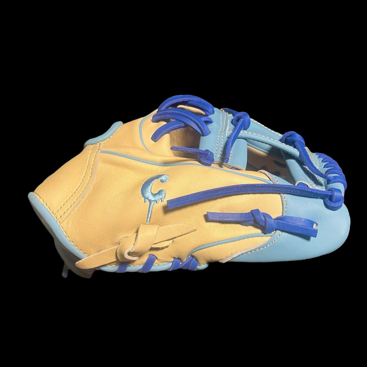The Farm System Drip Series 11.5” Youth I-Web Baseball Glove Blonde Baby Blue